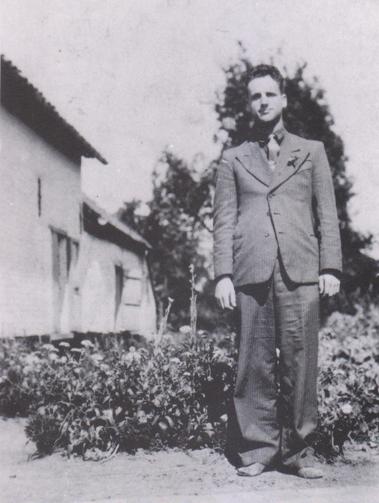 Le lendemain, Emilia se débrouilla pour trouver à Colt des vêtements à sa mesure. Ils furent offerts par Madame FORTEMPS, épouse d’Armand, qui les remit à l’aviateur, dont le costume de son fils qui se trouvait alors au Congo Belge. Ainsi vêtu plus correctement, Colt fut pris en photo par les neveux d’Emilia. Les clichés pris par Monsieur PIERARD, dont celui-ci-dessous, ne furent développés qu’après la Libération, en septembre 1944. Colt fut ensuite pris en charge par Achille LEONARD, qui, à vélo, le conduit jusqu’à Braine-le-Comte. (Liste des Helpers belges : "Achille LEONARD" et "Mme & Max LEONARD", à Braine-le-Château, sans autres détails…)