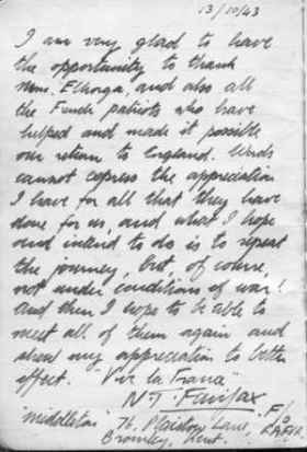 Norman Fairfax est interviewé le 08 novembre 43 par le MI-9 à Londres.