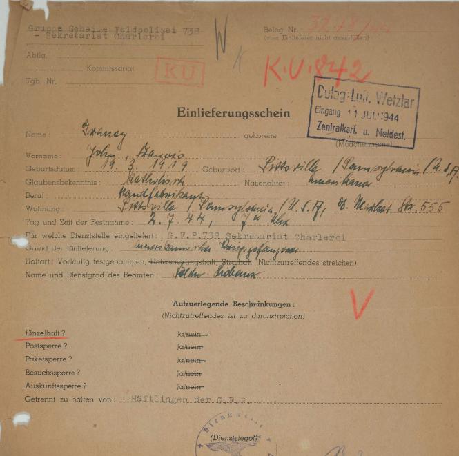 Guidés par Oscar PETIT de la Rue de la Régence à Charleroi, Graney et Gambino vont chez une autre Mme PETIT (Andrée PIRSON, épouse Pol PETIT ou Virginia PETIT) au 45 Rue Dagnelies à Charleroi. Ils y restent du 14 au 30 mars 44, tandis que Lambert est dirigé vers "l'Hôtel de l'M", chez une Mlle ANGÈLE, à Bomerée. Oscar PETIT et son épouse sont arrêtés le 28 mars, sur dénonciation du Français Maurice Stocklin, VMann du SD de Charleroi sous les ordres de Müller.
