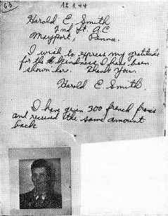 Smith est signalé aidé à Signy-le-Petit par Henri BOUTEILLER, qui sera arrêté en avril 1944 pour motif d'aide aux aviateurs évadés.